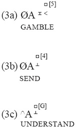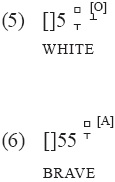 Es más problemático si se intenta aplicar el concepto de par mínimo a una seña como BRAVE ('valiente'), que en el ejemplo 4 se representa con la transcripción de Stokoe. Debido a que el concepto de secuencia de segmentos es parte integral de la definición de pares mínimos en el habla, y como este concepto no se tiene en cuenta en su aplicación a las señas, un analista tendría dificultades en la aplicación del concepto para BRAVE.