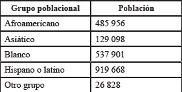La ciudad de Houston es la más grande en el estado de Texas y la cuarta en los Estados Unidos. Es considerada como una ciudad global y su economía tiene una base industrial en la energía, la aeronáutica, la salud y el transporte. Tiene una población conformada por varios grupos de diferentes culturas y religiones, así como una comunidad internacional creciente. De acuerdo con el censo poblacional de 2010, la ciudad posee una población de 2 099 451 de personas dentro del área de 656.3 millas cuadradas (1 700 km2). La Tabla 1 presenta los porcentajes de la población de acuerdo con el grupo poblacional: