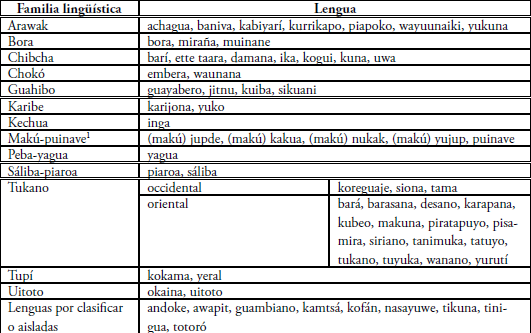 Muchas de las lenguas indígenas que se hablaban en el territorio colombiano se han extinguido (por ejemplo, el colima, el guane, el muisca, el muzo y el panche). Actualmente sobreviven sesenta y cinco, todas lenguas minoritarias; nueve de ellas están aisladas o no se han podido clasificar, y las demás pertenecen a trece familias lingüísticas (González de Pérez, 2011), como se puede observar en la Tabla 1: