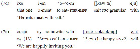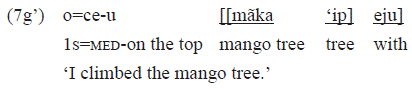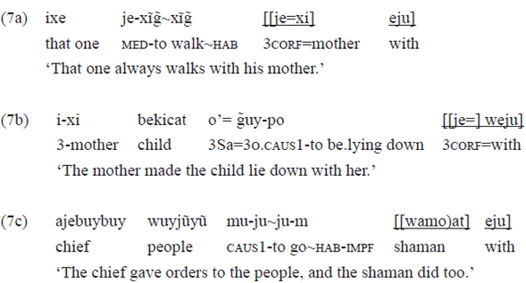The postposition «eju» is also presented in the form «weju», that occurs with pronoun complements (see example 7b).