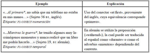 A continuación, se pueden revisar algunos ejemplos en el uso erróneo de los conectores en español como LE (Tabla 19).