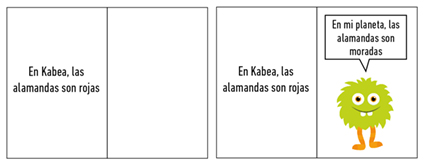 Después de leer cada situación sobre Kabea, los sujetos vieron a algunos personajes hablando sobre lo que sucedía en su propio planeta, algunos provienentes de Kabea y otros no. A partir de la descripción de lo que pasaba en Kabea, así como de la narración de lo que sucedía en el planeta de los personajes, la tarea consistió en indicar qué tan probable es que dichos personajes pertenecieran a Kabea.