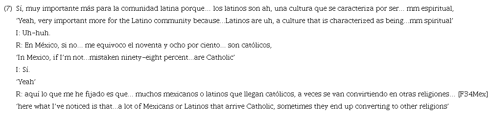 In this example, the subject los latinos is used to establish Latinos as the topic to be continued in the subsequent clauses (son católicos, latinos que llegan católicos, se van convirtiendo). A further illustration of LSs to establish a topic is the following:
