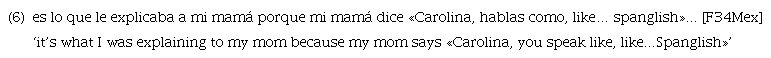 Furthermore, although appearing only once in this particular context in the Roswell data, LSs are used in question/answer sequences. According to Dumont (2006), this type of usage indicates a «repetition effect between speaker and interlocutor» (p. 286):