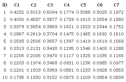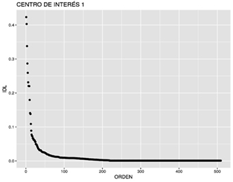En la Figura 8 se representan los valores de índices mayores a cero en forma decreciente para el primer centro de interés. Una tendencia similar se observa en los restantes centros de interés.