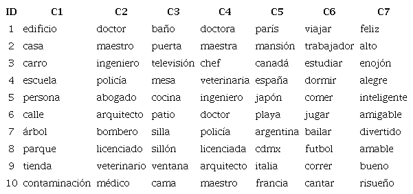 Como muestra de los resultados obtenidos, se construyeron las Tablas 1 y 2, que contienen los vocablos e índice de disponibilidad, respectivamente, con los primeros 10 valores de mayor disponibilidad dados en forma decreciente.
