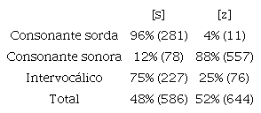 La Tabla 7 presenta los resultados descriptivos del contexto intervocálico, incluyendo solo los datos del contexto de /s/ final de palabra (donde se aplica el proceso fonológico de sonorización).