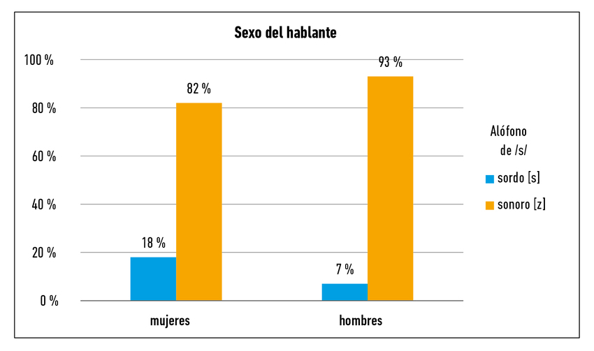 En cuanto al estudio de factores sociales en la sonorización de /s/ preconsonántica, la región de origen y el sexo han sido factores sociales estudiados en la realización de este proceso fonológico. Primero, como se ha discutido anteriormente, se ha encontrado mayor frecuencia de la sonorización de /s/ en algunas variedades monolingües estudiadas (por ejemplo, en la Ciudad de México, México, y en León y Asturias, España [Sedó et al., 2020; Muñiz Cachón & Cuevas Alonso, 2003]) que en otras variedades en contacto con el vasco en Bilbao y Vitoria, España (Campos-Astorkiza, 2015; Sedó et al., 2020). Segundo, se han encontrado resultados contradictorios respecto al efecto del sexo del hablante. Muñiz Cachón y Cuevas Alonso (2003) encontraron que, en Asturias, España, los hombres sonorizaron /s/ preconsonántica con más frecuencia que las mujeres. Strycharczuk et al. (2014) encontraron el mismo resultado en Quito, Ecuador, tanto para la duración absoluta (en milisegundos) de sonorización como para el porcentaje del segmento sonorizado (aunque también argumentan que el aparente efecto del sexo en sus datos podría ser en realidad una reflexión de variación individual). Por otro lado, otros estudios encontraron que el sexo del hablante no tenía ningún efecto significativo en la sonorización de /s/ preconsonántica (Sedó, 2015; Sedó et al., 2020).
