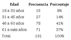 Edad: 1 (18-30 años), 2 (31-45 años), 3 (46-55 más), 4 (56 a más años)