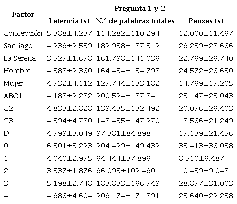 Los audios fueron analizados con ayuda del software de audio Audacity (versión 2.3.0), disponible en la web. Se midió en específico la duración de las latencias de las dos preguntas, así como las pausas internas, y se contabilizaron las palabras de cada intervención. Los datos considerados para el análisis fueron los siguientes: