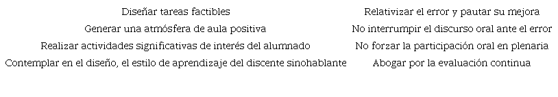 Finalizan su investigación facilitándonos una relación de ideas y técnicas aplicables al aula con la intención de rebajar esta sintomatología tan desfavorable para el aprendiente de lenguas extranjeras. Pasamos a sintetizarlas en la Tabla 1: