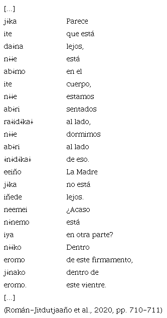 dɨona mananaitaja uai / jiibina mannanaitaja jagɨyɨ / ja jɨɨrafuena / ja ua yɨɨnoga / komekɨmo / dɨona jagɨyɨ / jiibina jaigɨyɨ / akɨ dɨona ja fɨnodɨmɨe / komekɨmo / ja ua jɨɨrana /ja fɨebikaide / mananaiya jɨɨra / kaɨ komuiya jɨɨra