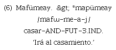 Finalmente, haber encontrado vestigios del efecto del sufijo causativo «-(ü)m» en una zona de articulación distinta de la mencionada en la literatura, refuerza, a nuestro juicio, el principio de simetría en fonología, además de señalar su validez para el estudio de algunos procesos en la diacronía de una lengua. En ese sentido, este artículo espera ser un aporte a los estudios sobre la morfofonología del mapudungun, así como al estudio sobre el protomapudungun y, en línea con ello, a la conexión de esta lengua con otras familias lingüísticas sudamericanas.