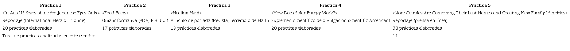 Como es posible apreciar, entre los textos analizados son predominantes los géneros periodísticos cuyo alcance es para públicos no especializados, incluso el artículo científico aplicado es de divulgación. De cada práctica se recabó determinado número de ejercicios, el cual se muestra en el tercer renglón de la Tabla 2. En total fueron 114 textos los que se consideraron para reportar en este documento, en los cuales se identificaron errores de diversa índole. Sin embargo, los que se describirán a continuación forman parte de los 60 sin sentidos encontrados y que hemos distribuido en las categorías descritas en la Tabla 1.