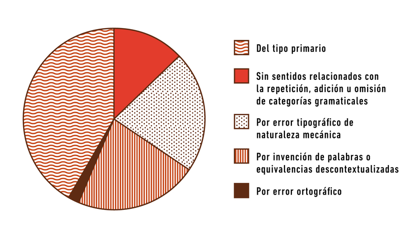 La siguiente categoría con respecto a la frecuencia de aparición en el corpus es la de los sin sentidos relacionados con la repetición, adición u omisión de categorías gramaticales, con 8 hallazgos. Finalmente, la categoría más escasa fue la de los sin sentidos por error ortográfico, con solo un caso identificado. Lo anterior se representa en porcentajes en la Figura 1.