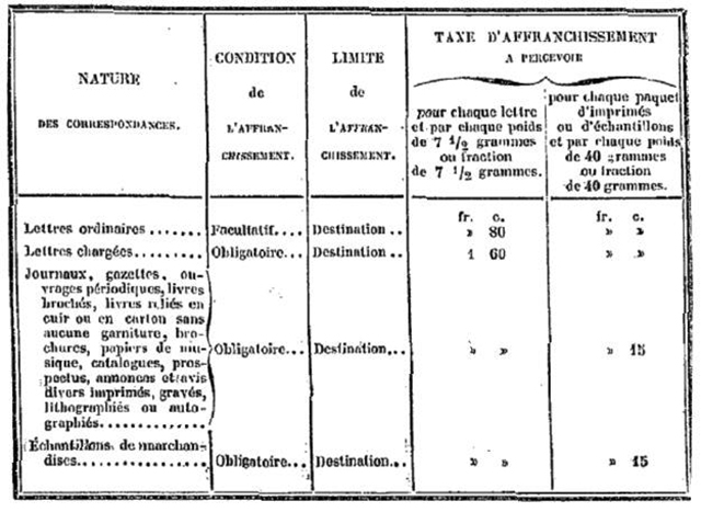 No Bulletin Mensuel de l’Administration des Postes (Boletim Mensal de Administração dos Correios-BMAP) francês de 1860 foi publicado um Acordo Comercial (firmado com base na Convenção de 7 de julho e no Decreto de 22 de julho de 1860) que trazia regulamentações detalhadas desse comércio. O tratado versava sobre condições especiais para a exportação da França e da Argélia para o Brasil de “impressos de toda natureza, em folha, brochados ou encadernados”, e trazia até mesmo datas e horários precisos de saída dos pacotes de periódicos impressos da França com destino ao outro lado do Atlântico. Havia duas rotas a princípio: uma direta para o Rio, partindo de Bordeaux, e outra que passava pela Inglaterra, saindo de Southampton, fazendo escalas em Calais e Havre. Depois foram inauguradas rotas que incluíam outros países da América Latina, como Buenos Aires e Montevidéu.
