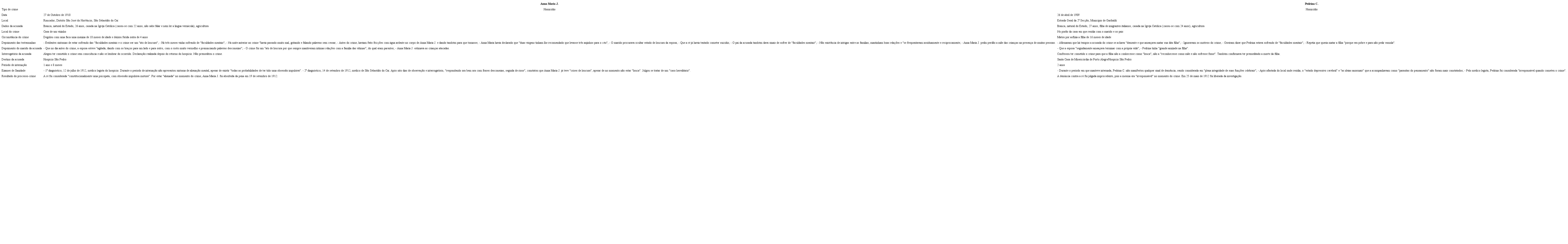 Entendemos que as duas mulheres aqui apresentadas se aproximam em diversos aspectos. Um deles é o crime praticado; o outro, o destino que tiverem após a ocorrência dos mesmos, uma vez que ambas foram encaminhadas para o Hospício São Pedro sob a alegação de que se encontravam “loucas”. Na condição de rés em investigação criminal, Anna Maria e Pedrina haviam sido responsáveis por dois crimes de homicídio cujos alvos foram crianças com pouca idade. Apesar de serem denunciadas por delitos diferentes, elas foram admitidas no hospício com a diferença de apenas alguns meses, tendo permanecido no local sob a avaliação médica por período concomitante. Talvez tenham até tido contato no interior da instituição, uma vez que lá se encontravam por motivos semelhantes: tinham cometido crimes em “estado de loucura” de acordo com as justificativas de familiares e conhecidos.
