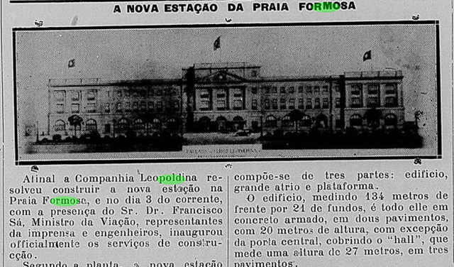 Vejamos que as primeiras referências à Estação Barão de Mauá/Leopoldina, inaugurada em 1926, informavam que se situava na Praia Formosa, quando o balneário não existia há muitos anos (Figura 15)24.
