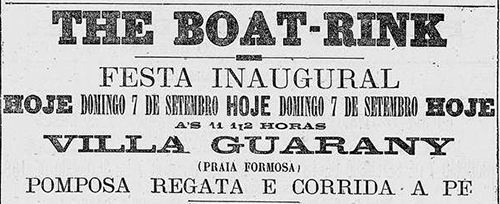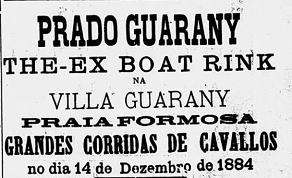O Prado Guarany teve origem em outro estabelecimento, o Boat Rink, inaugurado em setembro de 1884 (Figura 3). Tendo como proprietário Saul Severino da Silva, promovia corridas de remo, a pé e de velocípedes. Chegou a contar com bom público e ser reconhecido com um dos lugares elegantes da cidade (MELO, CHEVITARESE, 2018).