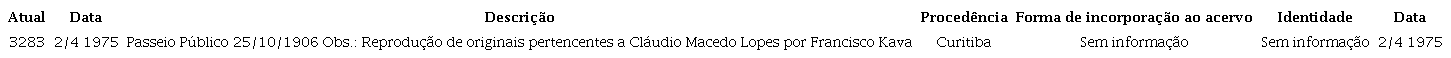 Na busca pela constituição desse novo acervo para a Fundação Cultural, as memórias de funcionários ainda atuantes no Museu Paranaense indicam a década de 1980 como a de presença de Kava na instituição, para a reprodução do acervo fotográfico em sistema de permuta. Não há registro de trabalhos específicos de Kava para o Museu, e sim de sua presença na reprodução de diversas imagens. Entretanto, mesmo que a memória desses agentes reporte a 198014, é mais factível constatar a atuação de Kava em 1975, conforme as fichas de catalogação e o contexto de organização de acervo da Fundação Cultural.