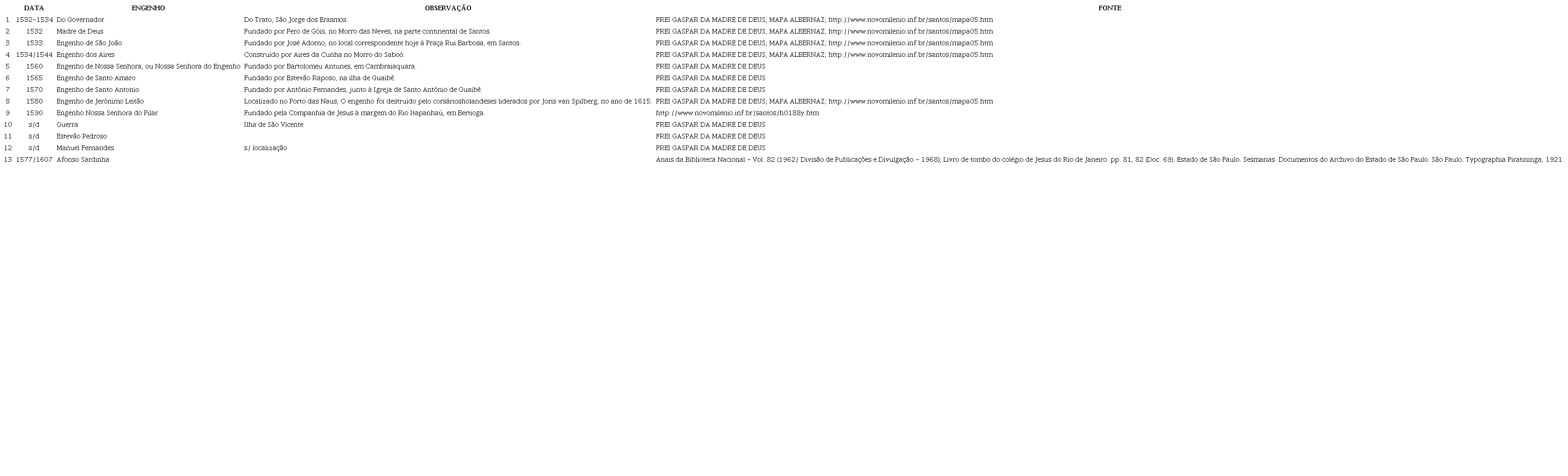 CORDEIRO, Silvio Luis. A Paisagem Histórica do Engenho São Jorge dos Erasmos. Dissertação (Mestrado em História) - Faculdade de Filosofia, Letras e Ciências Humanas, Universidade de São Paulo, São Paulo, 2007.