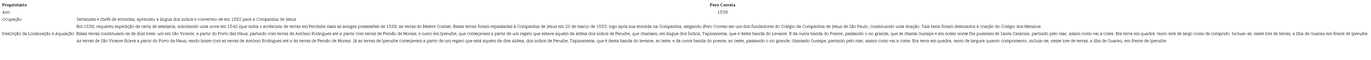 Importante notar que se a pesquisa sobre propriedades no período colonial é muito difícil, pela natureza da documentação cartorial, no caso do litoral das Capitanias de Santo Amaro e São Vicente, o desaparecimento dos registros de seus Cartórios exige a busca de outros caminhos para sua reconstituição em Processos de Herança, Livros de Tombo de Instituições Religiosas, dentre outros. Tomou-se como ponto de partida dados referentes à Fazenda Geral dos Jesuítas, inicialmente através da dissertação de Mestrado de Francisco Rodrigues Torres e da documentação relativa ao processo Procuradoria da Fazenda Nacional de São Paulo Fazenda Cubatão Histórico Dominial22, utilizando, ainda, Livro de Tombo de Colégio do Rio de Janeiro, da Biblioteca Nacional, Registros de Sesmarias, cronistas coloniais.
