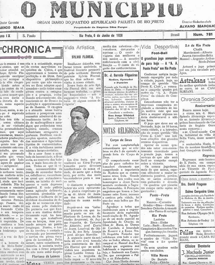 REALISOU-SE, conforme fôra anunciado. O Município, São José do Rio Preto, 9 jun. 1926b.