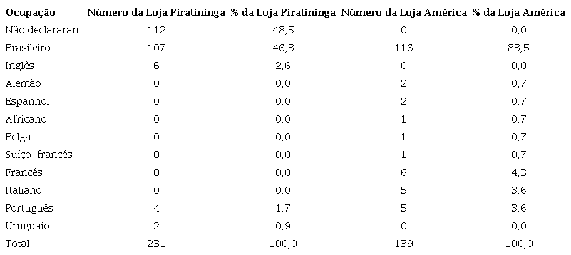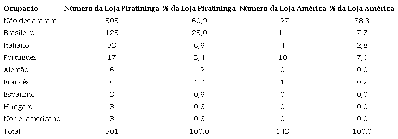Comparativamente, no primeiro período, a loja América reuniu grupo mais diversificado com candidatos de oito nacionalidades, ao passo que a loja Piratininga registrou apenas a iniciação de três nacionalidades. (ver Tabelas 3 e 4).