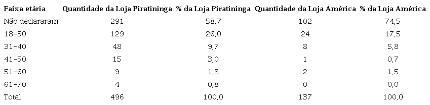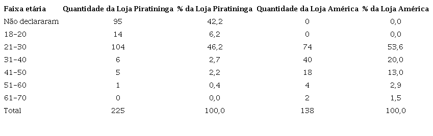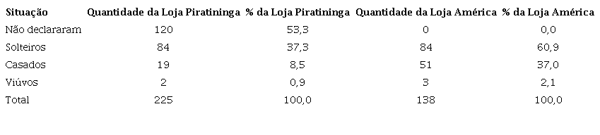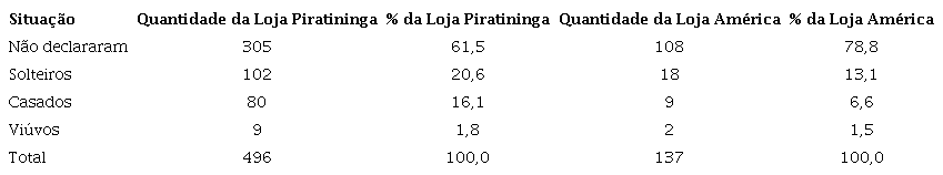 Quanto ao estado conjugal, é interessante pontuar que a loja América passou pelo processo contrário ao da Piratininga (ver Tabelas 7 e 8).