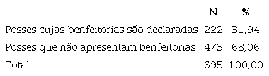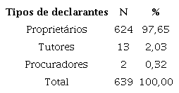 O nome do possuidor é uma informação que aparece em todos os registros e, na maioria das vezes, diz respeito ao próprio declarante, ou seja, à pessoa que fez a declaração. Vejamos o que nos diz a tabela 2 abaixo a respeito desta informação: