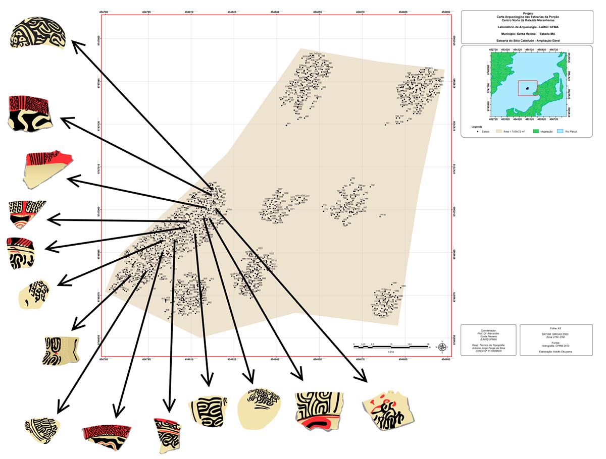 Estas sociedades palafíticas alcançaram seu auge no século IX e X AD e compartilharam uma cultura material uniforme, i.e., artefatos que se caracterizam de certa forma homogeneamente, sendo acordelada, muito bem confeccionada, com temperos de espículas de esponjas, cauixi, minerais e cacos moídos (NAVARRO, 2016, 2018a, 2018b). Quanto à filiação étnica destes grupos, esta permanece desconhecida. Embora algumas crônicas coloniais registrem, ainda que suscintamente, grupos que viviam em palafitas no atual Pará (DANIEL, 2004; D’ÉVREUX, 2008), elas não foram mencionadas para a atual região em que estão os vestígios arqueológicos. Nimuendajú (1946) registra somente grupos do tronco Tupi e Macro-Jê, na referida região, como os Guajajara e Gamela, respectivamente.