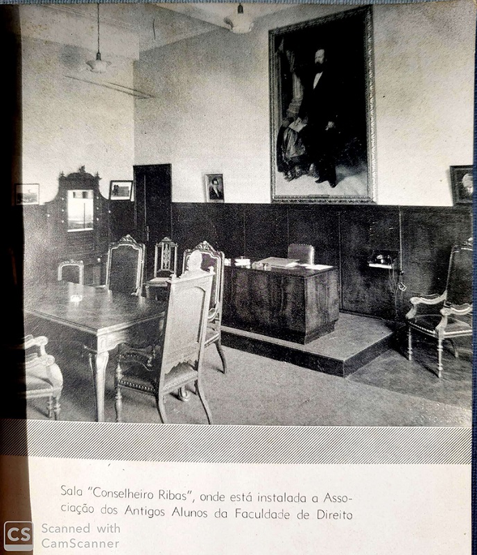 Neste artigo, o retrato é o documento-base para uma pesquisa que articula a história social à história da arte. É o ponto de partida para uma investigação que vai se dividir entre a biografia de Antonio Joaquim Ribas - o homem representado na pintura -, e a trajetória de Nicolau Huascar de Vergara - o artista que fez o retrato. Ao explicitar as trajetórias individuais entre modelo e pintor, este artigo busca transitar pela complexa tessitura de relações sociais na São Paulo de meados do século XIX. Reconstituem-se as ideias e a atuação do retratado, pautadas na função civilizatória do teatro, na escrita de uma história da independência a partir de São Paulo, na crença no direito como força organizadora da nação, que se constituía desde os anos 1820. Já a trajetória do pintor se encontra com a do retratado não apenas na realização de uma encomenda, mas também na vivência da vida boêmia da cidade, com seus pequenos teatros, poetas e universidade. Finalmente, este estudo aponta para um fato curioso: Ribas se deixa retratar de duas formas. Na pintura a óleo, para adentrar uma galeria de honra - no Ocidente, uma categoria quase milenar e no Brasil, tradicional local de memória para as elites desde o período colonial. Desse retrato, existe uma fotografia impressa em 1944, momento em que a Galeria do Antigo Salão Nobre já não mais existia e a pintura encontrava-se na Sala da Associação dos Antigos Alunos (Figura 2). O retrato a óleo hoje pertencente ao acervo da Faculdade de Direito é uma réplica pintada por Henrique Manzo em 1954 (Figura 3).