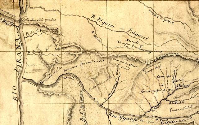 A nominação Nerinhé, ou Campos das Laranjeiras, aparece num mapa feito pelo engenheiro Pedro Müller em 1815 ( Figura 1). Nesse mapa, o rio Dorim tem as nascentes nos interflúvios com o rio Xarôrô/Cavernoso, nominado pelos Kaingang de Sãgroro, e ruma para noroeste para desaguar no rio Piquiri.