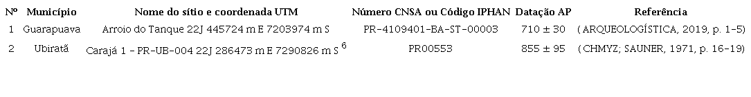 CAVALHEIRO, A. C. M. Relatório parcial 2 - Recadastramento de sítios arqueológicos (CNSA-IPHAN) Oeste Estado do Paraná. Processo Nº. 01508.000827/2016-41. Curitiba: EPPC, 2019.