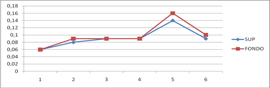Se obtiene la misma tendencia de uniformidad relacionada a la salinidad, conductividad, sólidos disueltos totales y sólidos totales. Respecto al comportamiento del pH, el mismo se encuentra en un rango permisible según el Decreto 883 que establece valores entre 6 y 8,5. El comportamiento de este indicador en el área se muestra en la Figura 2. En la estación 5 se reporta el valor máximo de acidez.