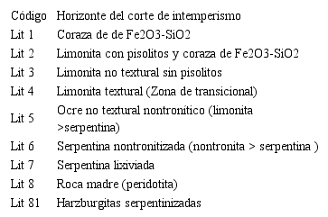 Palabras clave: Perfil de intemperismo, yacimiento San Felipe, yacimiento Piloto, corteza laterítica.