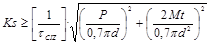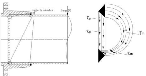 El término entre corchetes de la ecuación 10 considera las modificaciones de la tensión tangencial producto de los cambios en el estado tensional (Kd) provocados por el efecto del momento torsor y la carga, principalmente sobre el cordón de soldadura.