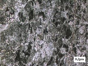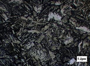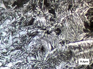 En la microestructura analizada anteriormente se puede observar la formación de una estructura de ferrita sobresaturada más bien bainita acicular.
