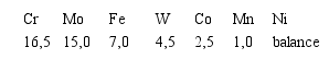 A partir de los elementos relacionados anteriormente, la composición química está en correspondencia con la establecida para una superaleación del tipo Hastelloy C (aleación C 276 o Inconel C 276). Es una superaleación de níquel–molibdeno–cromo, con adición de tungsteno, diseñado para tener una excelente resistencia a la corrosión en un rango amplio de ambientes severos.