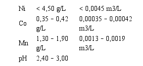 La principal operación tecnológica de la planta consiste en la precipitación de los metales en forma de sulfuros a partir de los sulfatos de níquel y cobalto contenidos en el licor producto, proveniente de la planta de neutralización, con el objetivo de extraer selectivamente el níquel y el cobalto de la solución y separarlos de las impurezas. El proceso se lleva acabo utilizando ácido sulfhídrico (H2S) como agente precipitador en las autoclaves bajo condiciones específicas de temperatura (121 °C). En la Tabla 2 aparecen las características de la pulpa lixiviada caliente.