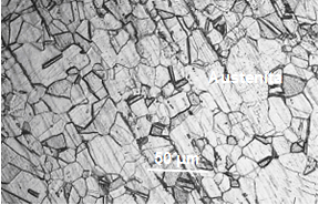 El contorno de los granos es rectilíneo y cuando se exponen a temperaturas entre 450 °C y 850 °C, temperaturas que se presentan en las proximidades de las zonas soldadas, donde se forman carburos de cromo en los límites de los cristales de austenita, se empobrece la zona adyacente de este elemento (cromo) y quedan de esta forma, expuesto a la corrosión.