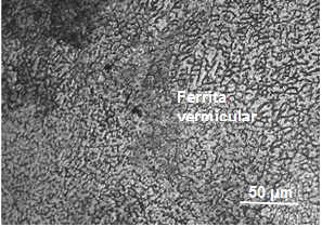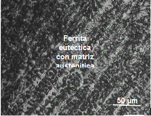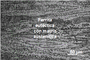 La presencia de ferrita delta en la microestructura se debe a las condiciones de no-equilibrio propias de la soldadura impuesta por el ciclo térmico, propiedades que pueden ser afectadas por las condiciones del proceso como son el calor de aporte, la tasa de enfriamiento y el metal de aporte.