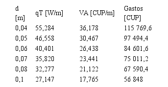 Si se consideran dos espesores consecutivos de aislamiento, la diferencia de pérdidas energéticas entre ellos tendrá un valor económico que puede ser considerable (Isover, 2004a). Para determinar dicha diferencia es necesario calcular el valor de las pérdidas para cada uno de los espesores de aislamiento evaluados, lo cual es posible auxiliándose de la expresión 15: