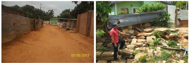 Infraestructura: Un aspecto que se tuvo en cuenta fue que en la construcción de algunas viviendas se utilizó material de relleno mal compactado, observándose la alteración y descomposición de los mismos. Igualmente las viviendas están construidas de forma inadecuada e insegura.