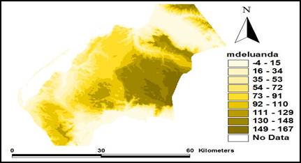 La Tabla 1 expone los datos de partida de las variables utilizadas para la confección del mapa de probabilidad de ocurrencia del agua subterránea en la provincia de Luanda.