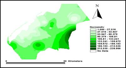 A la variable Ra se le atribuyó el valor de 0,1 en la Tabla 2. Este valor fue atribuido por el hecho de que la resistividad varía con el tipo del agua; para aguas saladas y salobres presenta valores bajos, en tanto el agua dulce presenta valores relativamente altos en relación a las otras aguas. Es un medio para diferenciar los tipos de aguas existentes en el subsuelo. Para la variable fueron seleccionados nueve campos de acuerdo con la variación de la misma (Tabla 9).