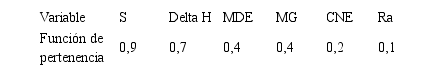 Para las otras variables sus valores de pertenencia se calculan usando la siguiente regla: