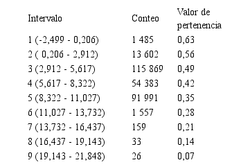 Otorgar a cada intervalo una función de pertenencia, en dependencia del criterio de experto asumido.