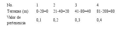 Una vez sabido el orden en que cada variable influye para determinar la existencia del agua subterránea en la región de estudio se establecieron los grados de pertenencia para cada variable, como su contribución al surgimiento del agua subterránea en la región. Como criterio de experto se asume que la conductancia longitudinal, como la variable que más contribuye a la surgencia del agua subterránea, tiene una función de pertenencia igual a 0,9.