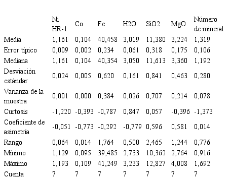 En la Tabla 2 se muestra la estadística descriptiva de la composición química del mineral alimentado durante la etapa de evaluación de los floculantes; el contenido de Fe estuvo en los valores normales de operación, oscilando de 39,4 % hasta 41,2 %; mientras que la SiO2 osciló de 10,3 % hasta 12,8 %, valores altos que provocan baja velocidad de sedimentación a la pulpa y se incrementa la altura de la cama de sólidos en el sedimentador. Se considera que esta composición pudo tener influencia en los resultados obtenidos durante la evaluación.